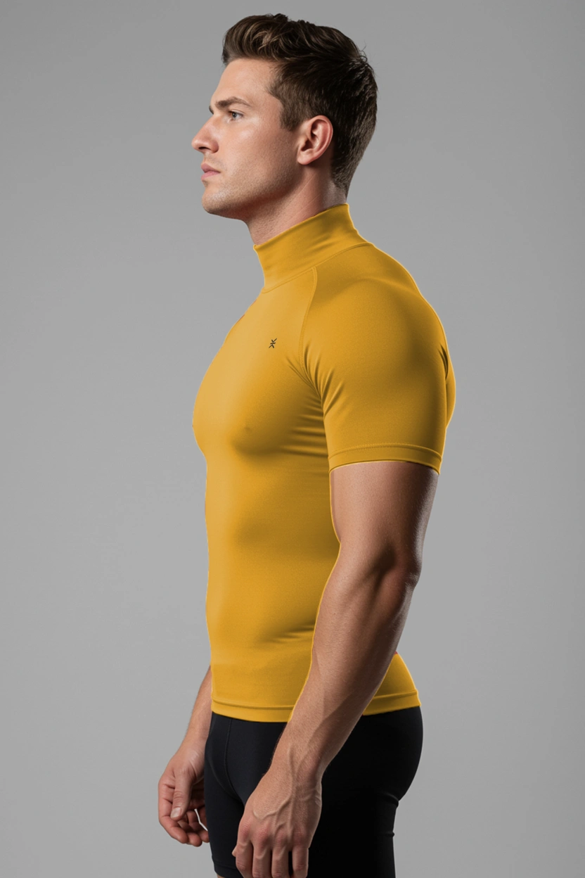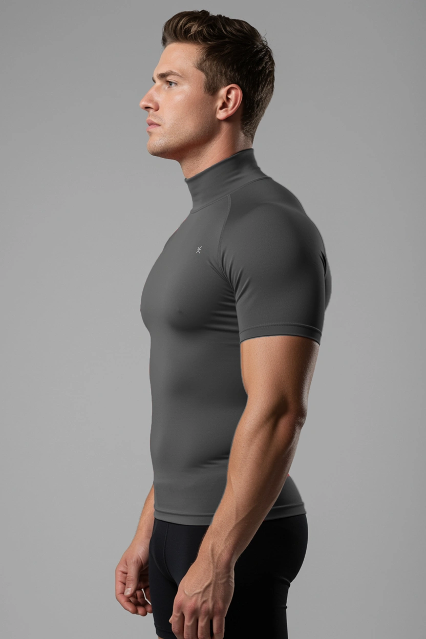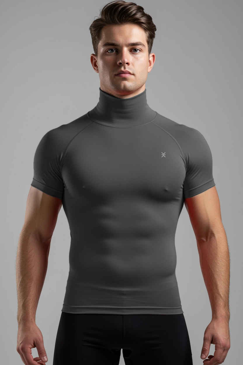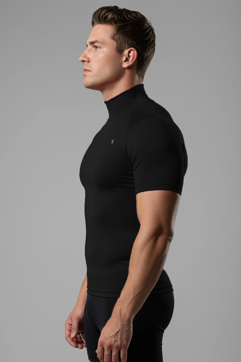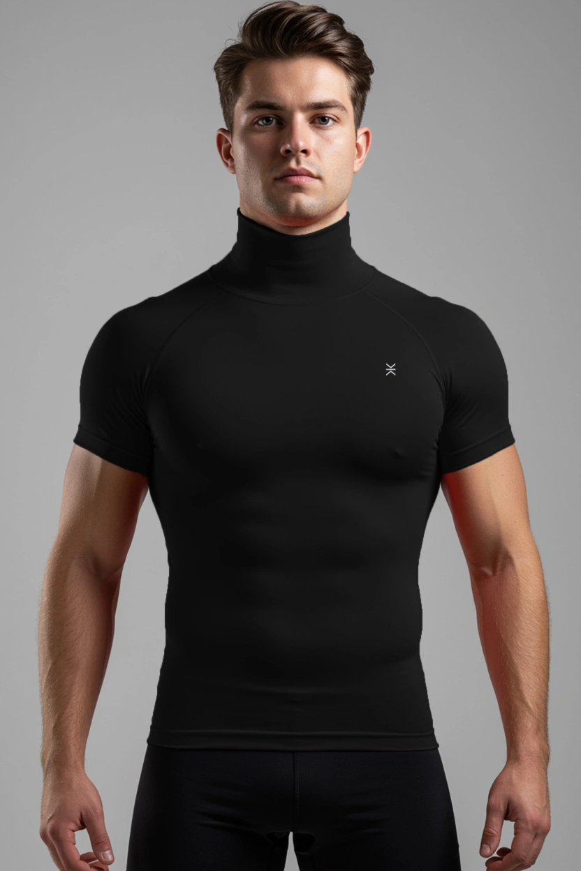 This high-neck compression top for men is designed to support your muscles during workouts, runs, and intense training sessions. The snug, flexible fabric moves naturally with your body while helping reduce distraction from excess fabric. The higher neckline adds light coverage and warmth without feeling heavy. Wear it on its own or as a base layer. Available in multiple colors for easy rotation.