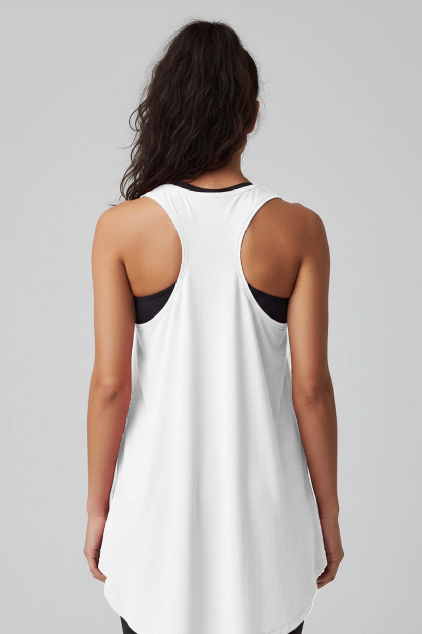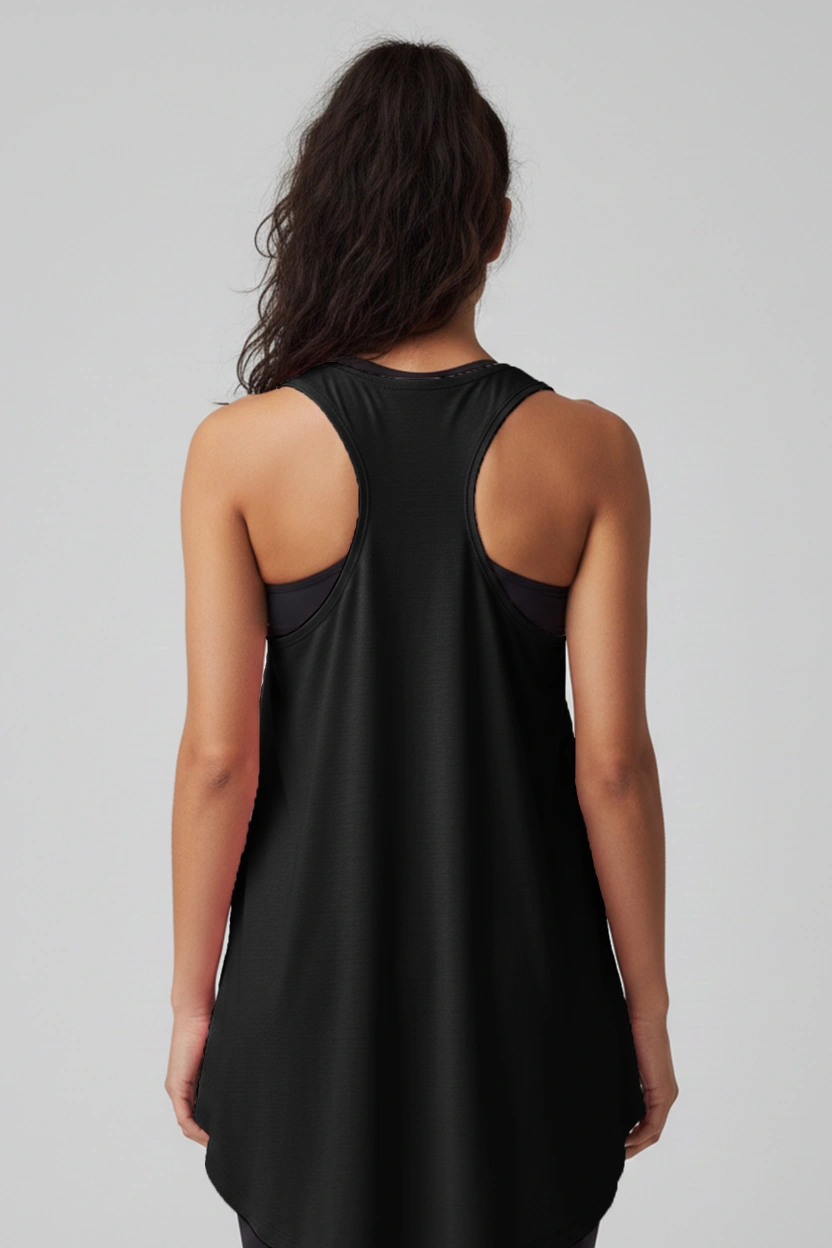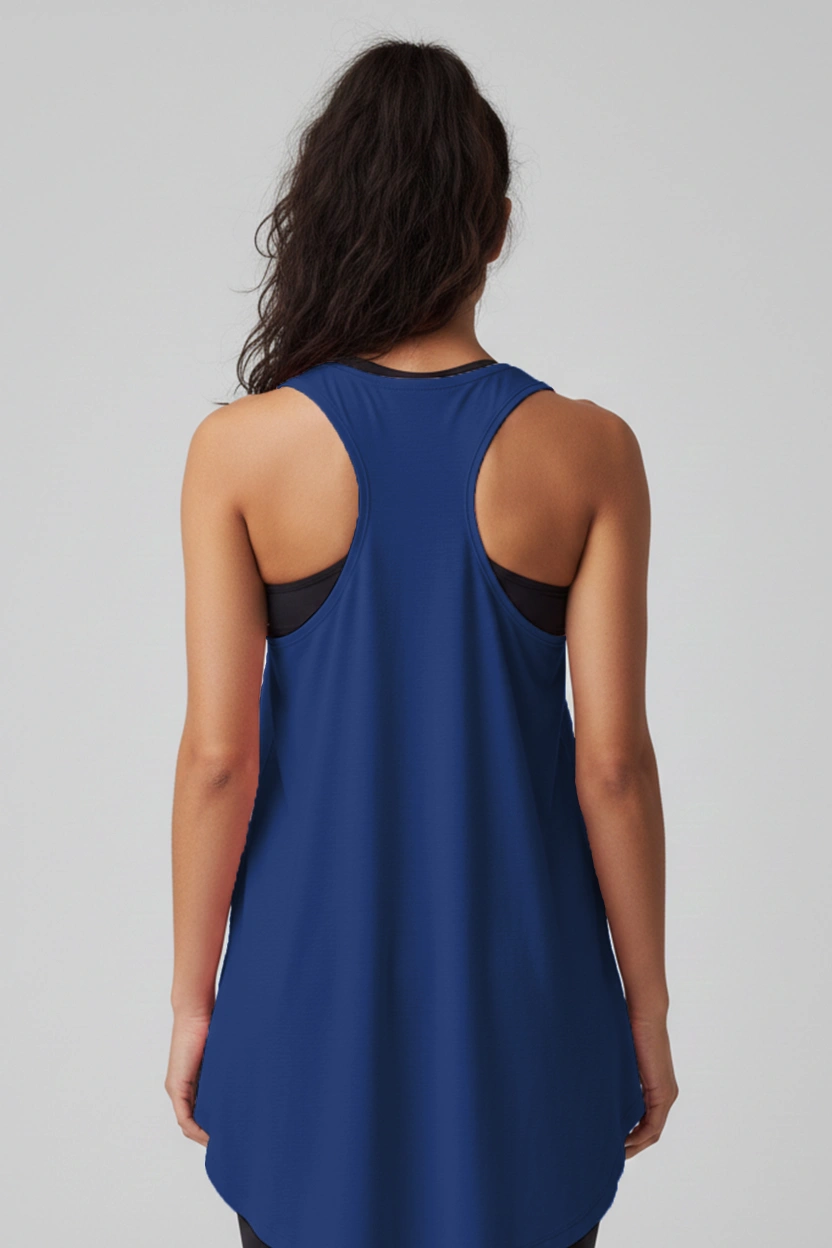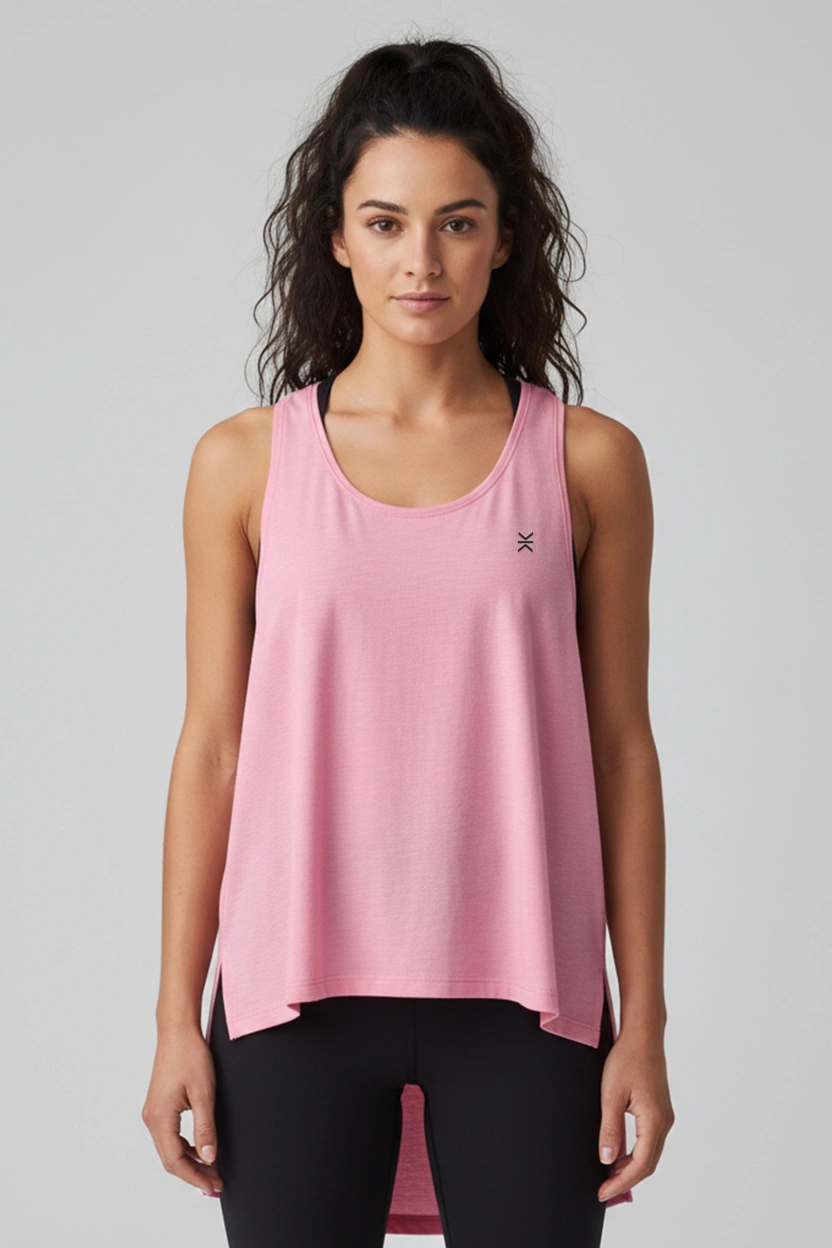Side slits add ease when stretching or lifting, and the slightly extended back hem offers extra coverage where it matters. This tank layers well over sports bras and pairs easily with leggings, shorts, or joggers, making it a reliable piece for gym routines and outdoor walks alike.