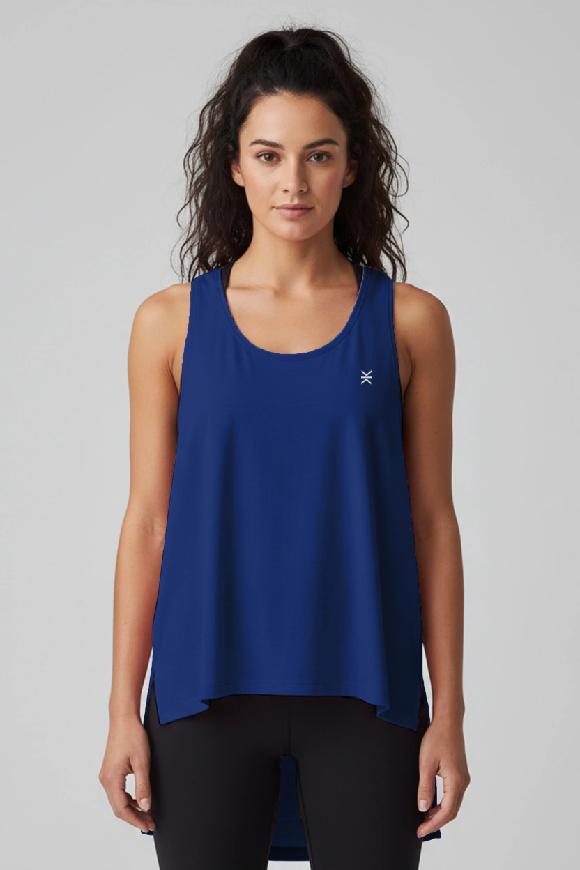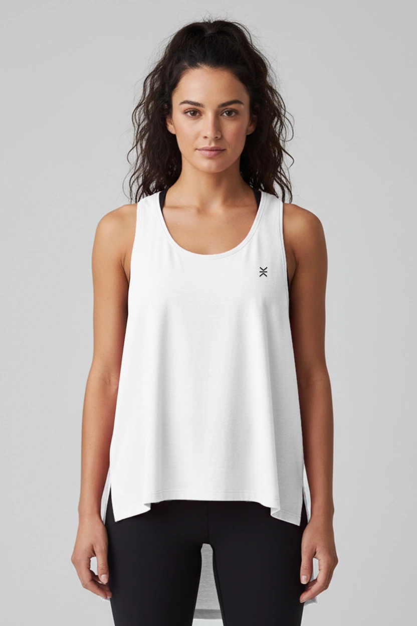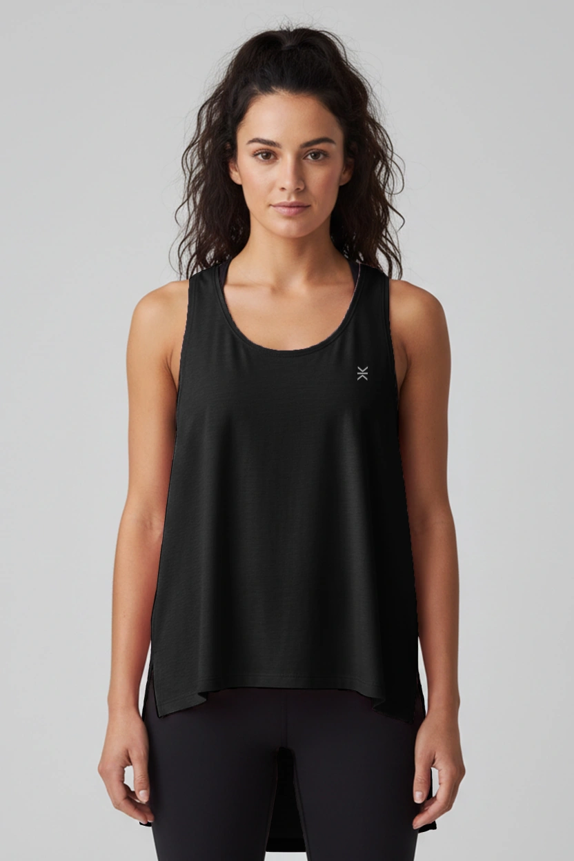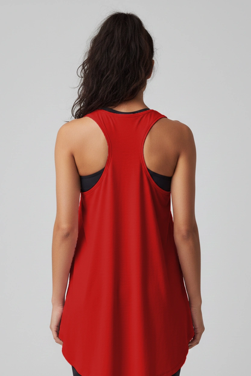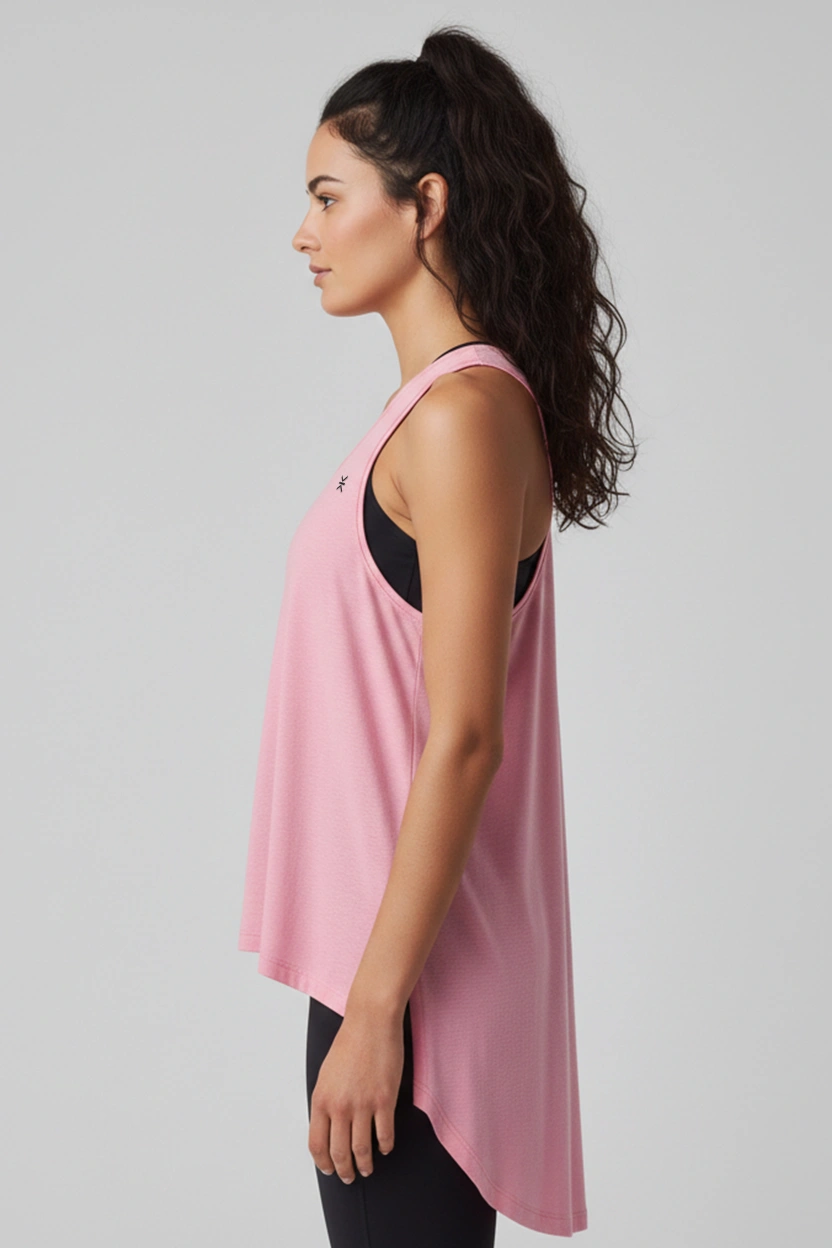 Side slits add ease when stretching or lifting, and the slightly extended back hem offers extra coverage where it matters. This tank layers well over sports bras and pairs easily with leggings, shorts, or joggers, making it a reliable piece for gym routines and outdoor walks alike.