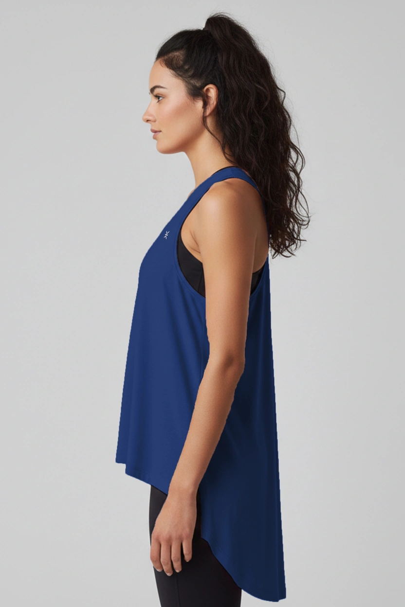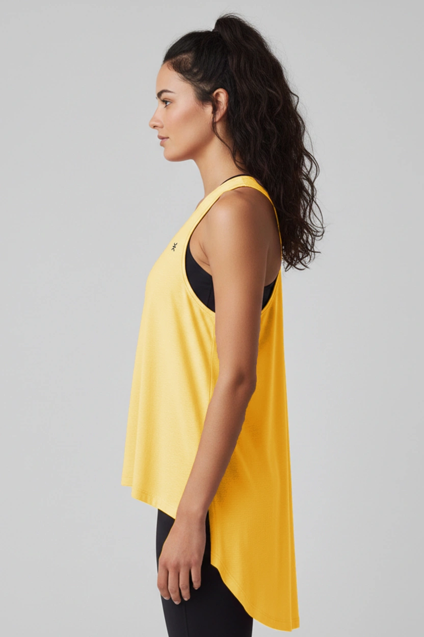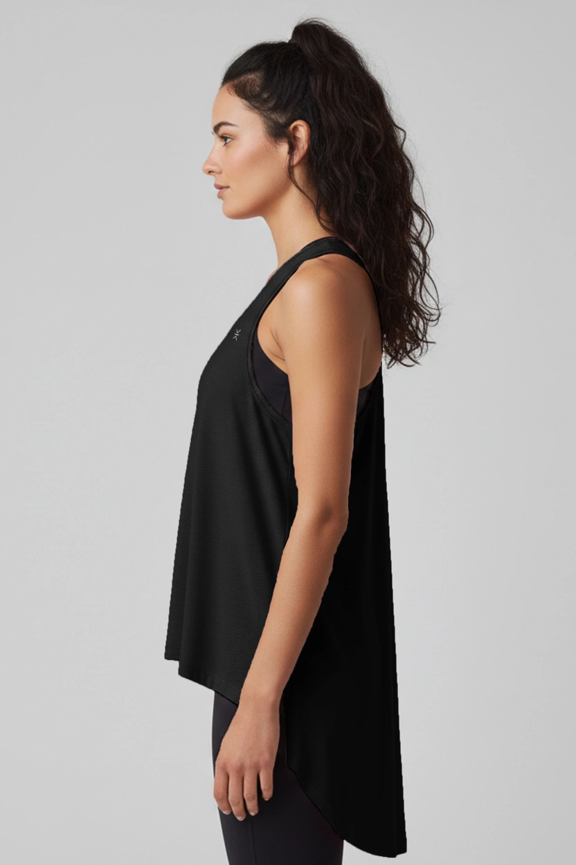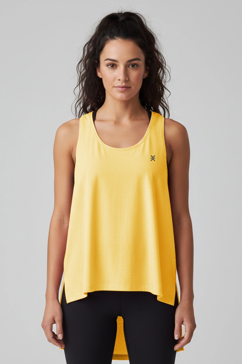 Side slits add ease when stretching or lifting, and the slightly extended back hem offers extra coverage where it matters. This tank layers well over sports bras and pairs easily with leggings, shorts, or joggers, making it a reliable piece for gym routines and outdoor walks alike.