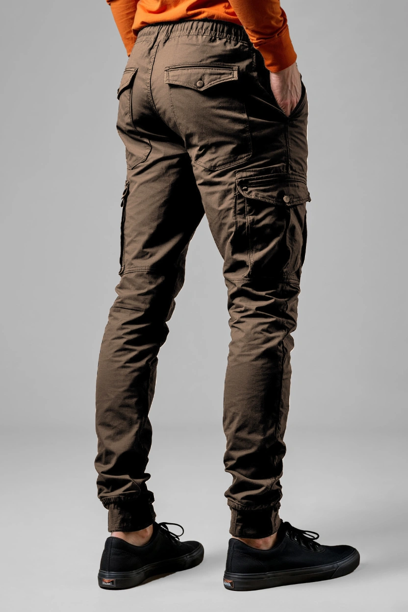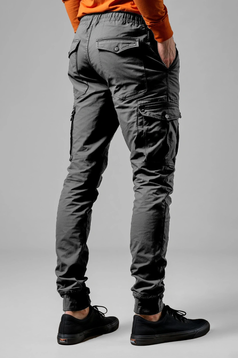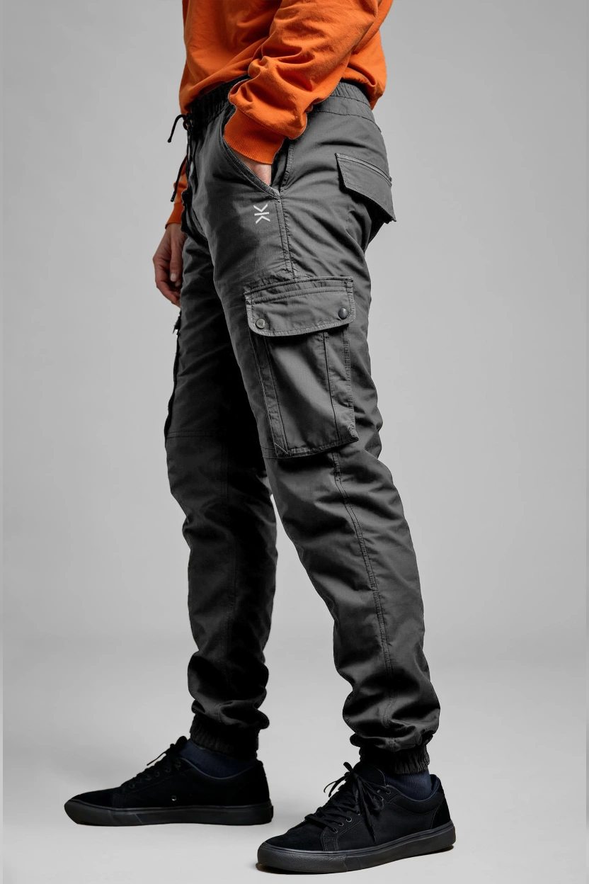 These men’s cuffed ankle utility cargo joggers from Körperpflege Collection are built for movement, storage, and daily comfort. The woven performance fabric feels steady yet breathable, making them suitable for light training, walking, and everyday routines.