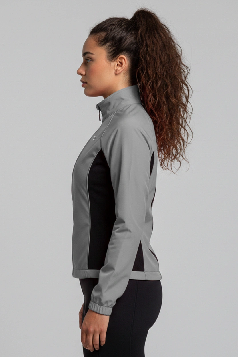 Soft performance fabric keeps the jacket comfortable during extended wear, whether layered over a tank or worn on its own. Stretch panels allow natural movement through the shoulders and arms, making it suitable for gym sessions, outdoor runs, and travel to and from training.