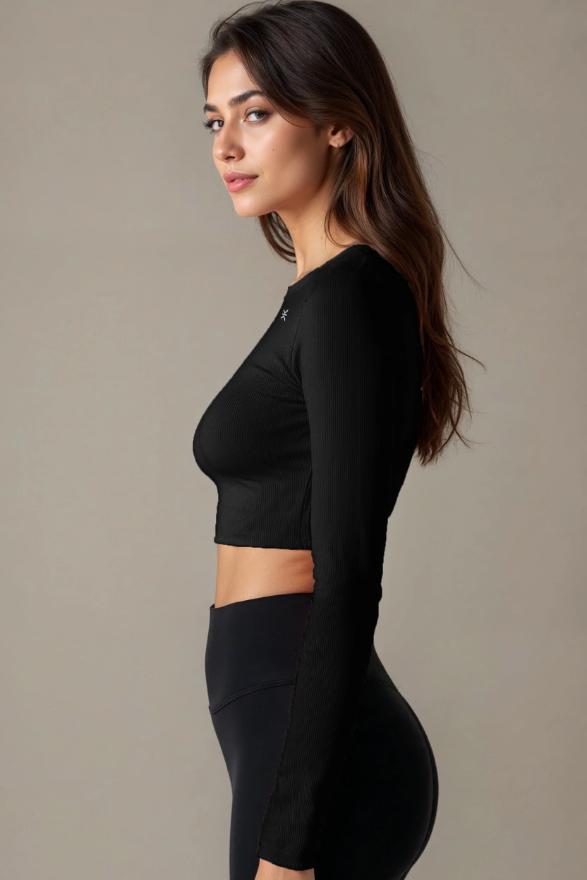The Korperpflege Collection Women’s Ribbed Long Sleeve Crop Top is designed for daily movement and comfortable wear. Crafted from a soft ribbed fabric, it offers natural stretch that supports easy motion without feeling restrictive. The cropped length works well with high-waist leggings, joggers, or shorts, making it suitable for training sessions, warm-ups, or casual styling. Long sleeves provide light coverage while keeping the fabric breathable, allowing the top to be worn across different seasons. Its clean shape and smooth finish focus on fit and comfort rather than excess detailing, making it a reliable choice for active and relaxed settings alike.